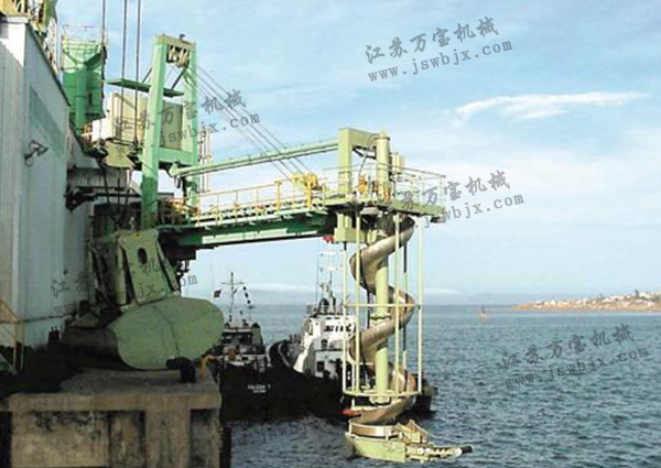滑槽式裝船機的裝船能力一般在每小時100噸左右,最大也不超過每小時150噸。過大的速度會易造成袋物在帶式輸送機上堵塞,嚴重時會因袋物在過大傾角的螺旋滑槽上強烈下沖造成包裝袋破裂,所以在設計選型中不要盲目追求裝船能力以免帶來意想不到的不良后果。